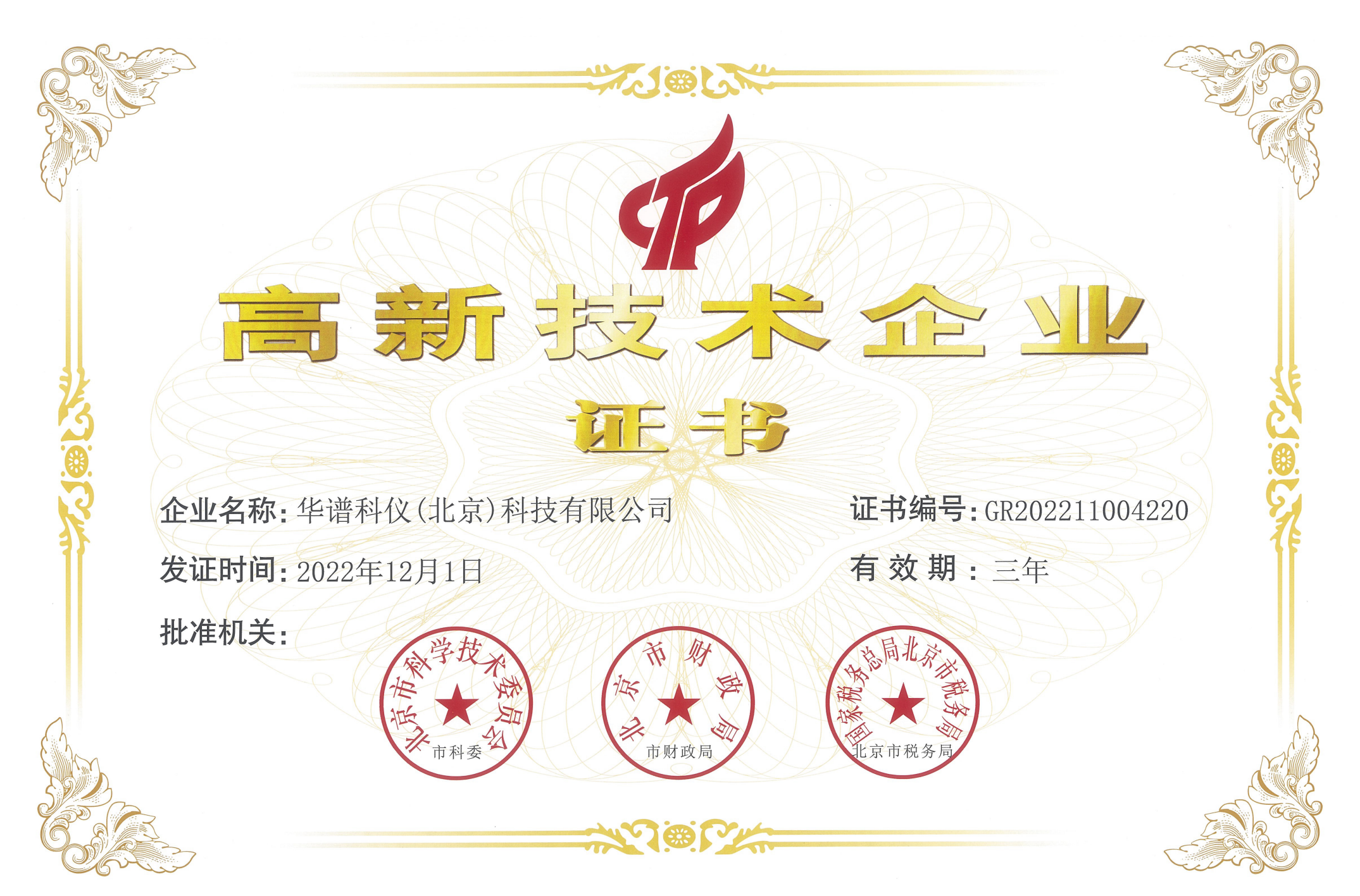 華譜科儀獲“國家高新技術企業”認定!